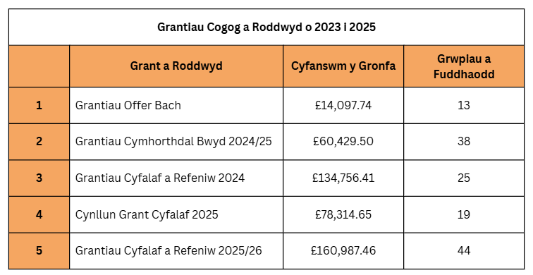 Nid oes unrhyw grantiau ar gael ar hyn o bryd.